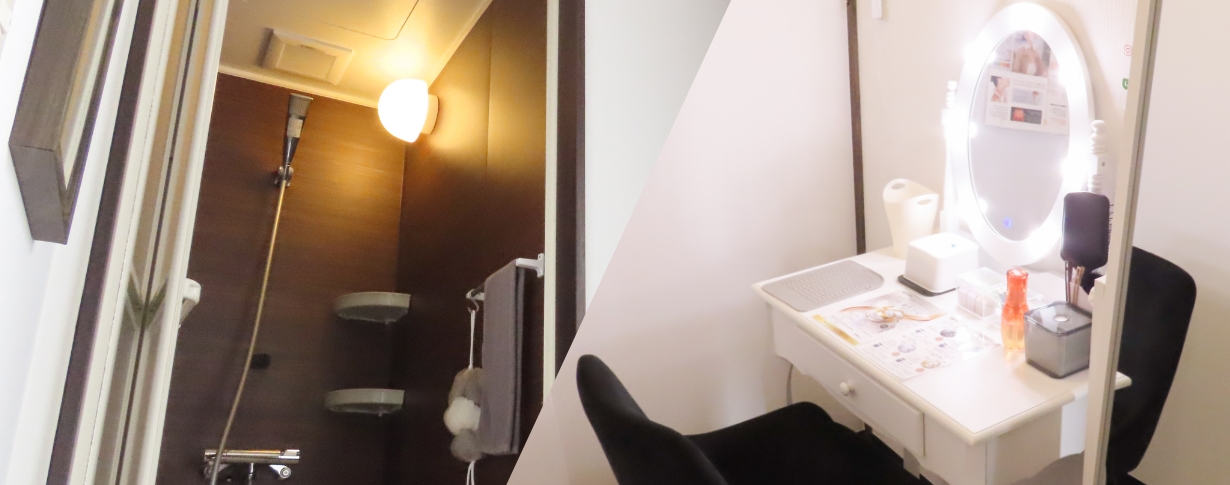 フェイシャルにも使用しているアジュバンのコスメをファンデーションからアイライナー・ヘアクリームやヘアオイルもご用意。韓国コスメで大人気のV3ファンデーションも全種類ご用意&お試し出来ます。ヘアアイロンも数種類個用意!施術後もステキにお出掛けOKです。